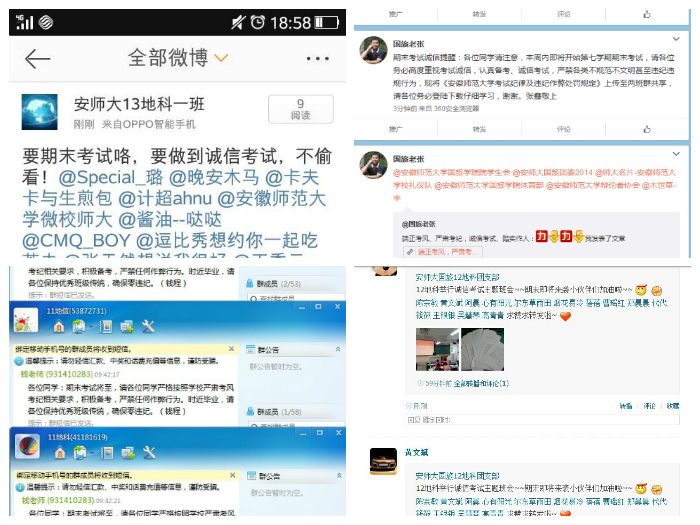 微微互动 线上线下说诚信。为在全院范围内营造积极备考、诚信考试的氛围,各年级辅导员、学生骨干等充分利用微博、微信、飞信等新媒体平台,撰写诚信考试箴言,分享复习备考经验,公示违纪考试案例,发布最新考务信息。女同做爱