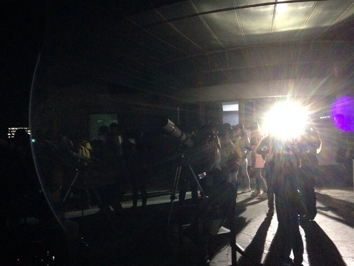 领导、专业负责人、专业教师以及地理科学专业各年级本科生近百人参与了本次专业实践体验活动。同学们在现场老师们的指导下,对月食的形成原理、月全球呈现“左脸黄白、右脸微红”的颜色、月食发生的农历日期、月球表面的环形山等进行了深入交流与热烈探讨,并在互动中极大地强化了专业认知,巩固了专业思想,坚定了发展目标。