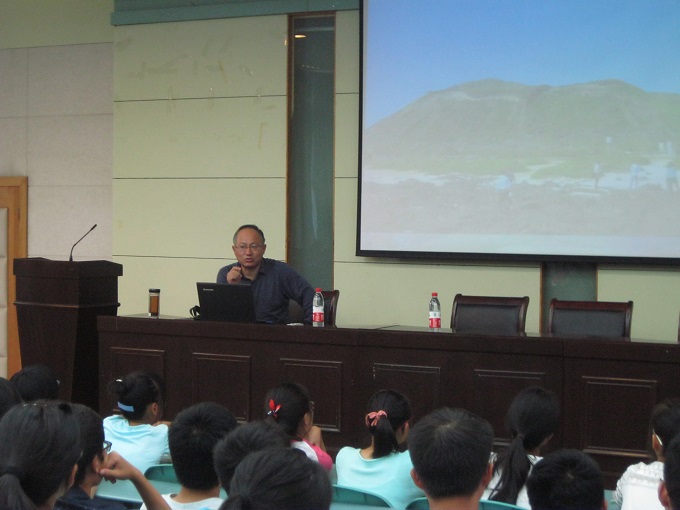 最后一场地科专业思想教育会是由中国水利水电科学研究院博士生导师严登华教授主讲。14级地理科学专业新生认真聆听报告。严登华教授从如今社会需求、国家建设、自然规律三个方面点出此次讲座主题——选择地理是我的庆幸。他指出,无论是如今国家需求,还是国家战略布局,其解决问题的核心是地理手段。他以一个颇具幽默气息但引人深思的比喻道出地理科学的重要性。“你是愿意开宝马车喝脏水,还是愿意骑自行车喝甘甜的矿泉水?”这一比喻不仅活跃会场气氛,还告诫了我们要遵循自然规律,爱护环境,走集约、高效、健康、多样、适度发展之路。紧接着他结合自身工作经验指出地理为国家大决策提供支撑。随后严登华教授告诉同学们在学习过程中要做到:多问、多想、多记、多动手、紧结合。最后他引用毛泽东同志的名言勉励学生要做到“厚德、重教、博学、笃行”。