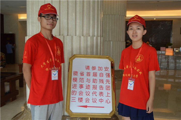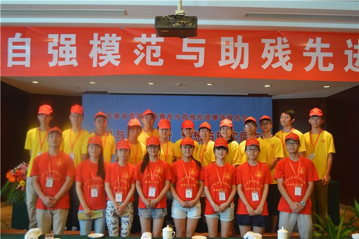 赵影、沈晓颜)间隔体验温暖,旅行助力公益。7月8日-10日,在铜陵市政府的大力支持下,我校“间隔公益旅行”团队承担了我省首届自强模范与助残先进事迹报告会的志愿服务工作,为在场的每一位残疾人士送去贴心的服务与帮助,带给他们真切的关爱与温暖。