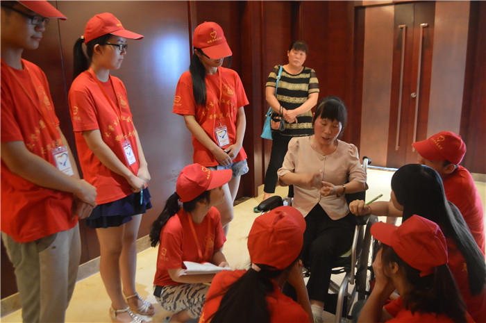 在报告会开幕前,间隔公益旅行团队成员们在工作人员的带领与指导下开始前期筹备工作,各队员分工明确、井然有序,先后在酒店大厅、电梯门口、贵宾接待室以及会场现场展开礼宾服务,为前来参加报告会的残疾人士提供指引,帮助那些行动不方便人士乘坐电梯,并安全顺利地入座会场。报告会在六位自强模范和助残先进人士的讲话结束后落下帷幕,志愿者们又积极主动地帮扶众多残障人士,顺利离开会场。