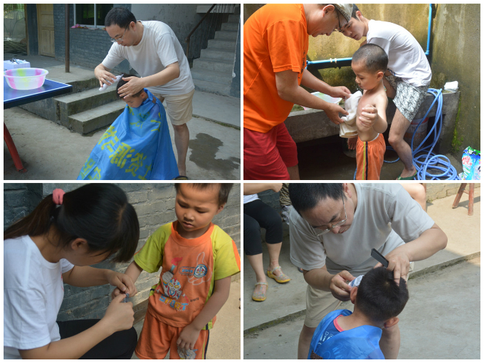 在保利时希望小学的捐建者冯先生及其随同郑先生的提议下,7月8日,我们开展了主题为“爱心清洁”的系列活动,即为孩子们剪指甲、洗手、理发。理发工作由郑先生负责,川队九名成员则分别负责上课、为孩子们剪指甲以及为已经理完发的孩子们洗头发的任务。