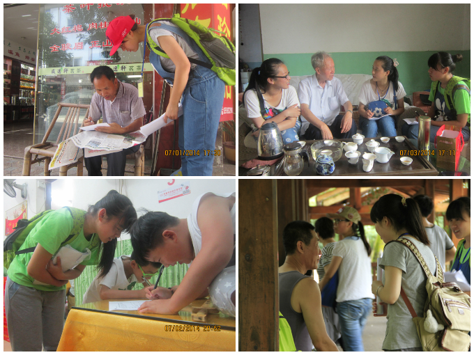 为了解当地居民对非遗保护传承意识,上午8点队员们在住宿地集合,分为3组,分别前往市区街道、社区、景区,随机向不同年龄段人群发放问卷。在发放问卷中,团队记者分别对少、青、壮年进行采访。炎炎烈日下,队员们始终面带微笑,礼貌问好,发放问卷。共发放600份问卷,收回594份,回收率99%。发放问卷当晚,队员们回到住宿地稍作休息后,立即统计整理问卷数据。