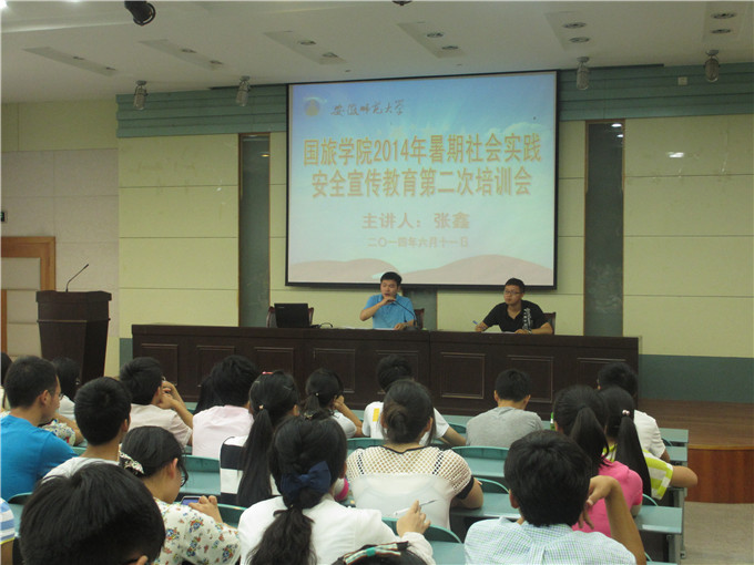 实验楼101会议室召开了暑期社会实践安全宣传教育第二次培训会。会议由院团委书记张鑫老师主讲,国旅女同做爱