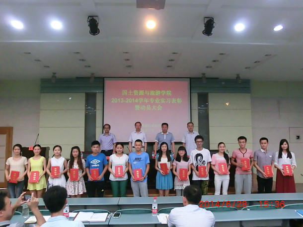 焦华富院长首先宣布了关于11级先进实习小组、优秀案例、优秀个人的表彰决定。杭州喜来登大酒店实习小组、绍兴开元名都实习小组获得了先进集体的殊荣。另有杜欣、印娜等十多位同学荣膺优秀个人、优秀实习案例的称号。随后11级旅游管理的李菁同学、11级土地资源管理的曹海涛同学作为优秀实习生代表进行了发言。他们用亲身经历,鼓励学弟学妹们勇于吃苦、持之以恒、善始善终。