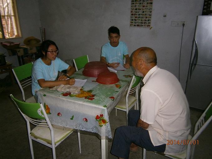 第三步是深入农户调查,由于外界原因,我们的实践活动在交通方面出现了问题。由于调查的村落偏远,我们没能乘坐预定好的大巴前往调查,但是小组队员排除万难,展开头脑风暴,甚至半天步行十几公里完成调查。在调查过程中,队员们两人一组,同样以调查问卷的方式与村民们对话交流,了解他们对于当地土地流转信托的一些看法和具体的流转信息。在调查过程中,团队也遇到了不少困难,比如很多村民外出打工不在家,雨天热天交加,但最后我们还是顺利完成近百份的调查问卷,获得丰硕的成果。