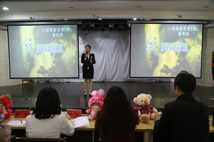 旅游管理专业的选手们分别对黄山、九华山、奇瑞工业园、方特欢乐世界、王稼祥纪念园等著名景点做出了精妙绝伦的讲解,展示了作为旅游人扎实的专业功底和素质。而公共组选手则充分利用自身专业优势,以流利的英语、悦耳的歌声、曼妙的身姿带大家全方位多角度真正的感受到师大这片沃土的魅力。比赛现场气氛热烈、掌声雷动,选手们异彩纷呈的表现奉献了一场丰富的视听盛宴。