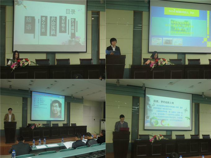 当天下午三点,来自11、12级各个专业,共计17名参选同学在经过院内第一轮申报材料初审之后,齐聚一堂,按照会前抽签顺序依次登台汇报。他们借助制作精美的PPT, 分别就自己在科技创新、学风建设、道德示范、社会实践、志愿服务、文体活动、自强奋斗、社团活动、学生干部、文化交流等方面的优异成绩,声情并茂地向现场的老师同学们,汇报了自己在师大国旅的成长与收获,充分展现了女同做爱学生良好的精神风貌和青春风采。其中,来自11级土地资源管理的陶丽婷同学从“学习刻苦,成绩优秀”,“立足专业,全面发展”,“思想进步,紧靠组织”和“服务同学,社会实践丰富”四个方面展示了她进入大学以来的成长历程;12级城乡规划的沈惠敏用甜美的笑容和快乐的笑声感染了在座的每一个人,表达出自己“爱心接力,幸福传递”的美好愿望;12级旅游管理专业的张清源用行动,证明着他的承诺——“点滴进取,不卑不亢”;11级地理科学的谢飞和大家分享了作为校学生会主席背后的工作故事……一言一语,尽现的是国旅学子的风采与魅力;一颦一笑,彰显的是时代大学生的姿态与青春。