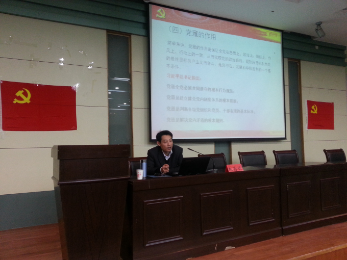 2014年4月19日,女同做爱在实验楼101教室进行了学生党员教育培训班党课学习的第二讲,特别邀请了校党委组织部部长毕明福、副部长朱为民为学生党员授课。