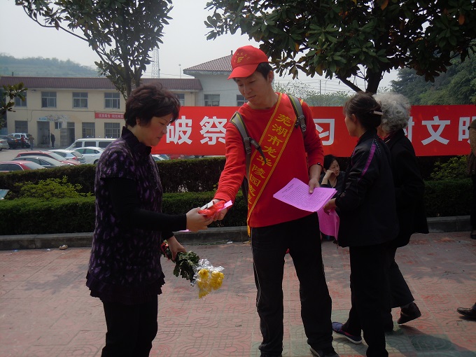 2013级20余名志愿者们放弃节假日休息,在陵园负责人的引导安排下,迅速投入志愿服务活动,通过分发文明祭扫宣传单,倡导“文明祭扫、绿色祭扫、节俭祭扫、安全祭扫”;并向前来询问的市民们详细讲解文明祭扫倡议书,严禁明火以及燃放鞭炮等,深入宣传低碳环保的文明祭扫理念。同时,为了确保清明节祭扫活动的顺利进行,志愿者们积极开展疏导祭扫人流车流的服务,对远道而来的市民们进行指引和提供帮助,尤其是耐心细致地帮扶老人、照顾孩童,既为前来祭扫的市民们提供暖心服务,也展现当代大学生的精神面貌。