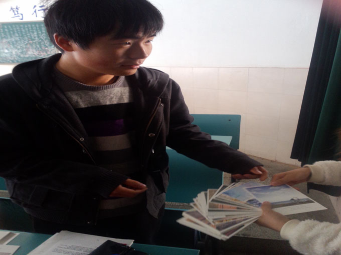 这次活动由班委会发起,一张张写满女生小小心愿与真诚祝福的明信片得到了全班男生们的青睐。十几位男生很有绅士风度地在自己力所能及的范围内尽可能地满足女生们的心愿。该班男生唐腾飞说:“有缘成为同班同学,我们男生非常乐意为女生们做一些事。”同时,作为回报,男生们也收到了女生的祝福。