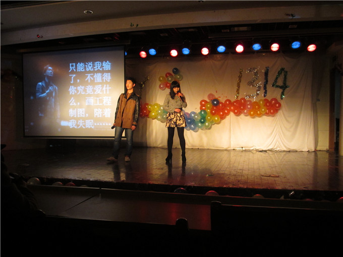 13级旅游管理专业辅导员吴辉老师还带领他的学生表演了一支动人的双人舞蹈《山楂树之恋》,低声轻柔的吟唱,优雅美丽的舞步,使国旅学子们在这腊月的寒冬感受到青春的活力四射。整场晚会高潮不断,踩气球、成语接龙等小游戏的穿插使得欢乐的激情贯穿始终,给每个人都留下了深刻而美好的记忆。