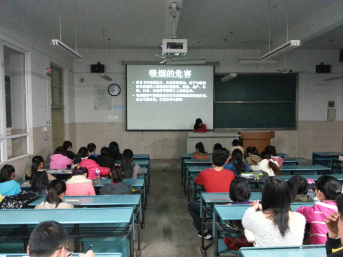 同时,13级地理科学专业为了响应学校号召,开展了有关吸烟危害的讲座。讲座通过PPT与视频相结合的方式,严肃又不失幽默的说明了吸烟的危害性,让同学们认识到“远离烟草,珍惜生命”的重要性。最后,向全体同学发出倡议,努力做到让烟草真正远离我们的生活。