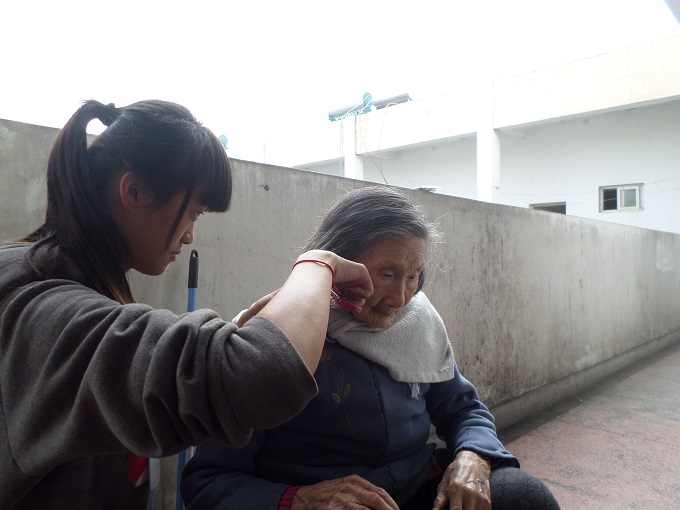 志愿者们还为老人们带去了才艺表演,如拉胡琴,唱歌,跳舞之类的。表演过程中,老人们随着同学们的表演津津有味的打着节拍,脸上洋溢着开心的笑容。更有细心的同学还帮老人们按摩,有些老人年纪大了,听力衰退,我们志愿者们就用肢体语言同他们交流,可以看出,老人们对我们的到来都表示非常的欢迎,我们也希望以后能有更多的机会去帮助和陪伴那些孤独的老人们。