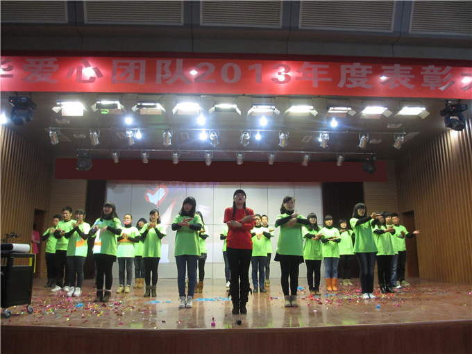 的爱心者协会会员们为现场近1000名志愿者代表带去了《感恩奉献》手语歌舞表演节目。“感恩的心,感谢有你,伴我一生,让我有勇气做我自己……”这一曲感人肺腑的乐曲被志愿者们深情演绎着,传达了爱心者协会“承传校友情意,共建爱心桥梁,关注贫困群体,发扬友爱精神”的社团理念。多年奉献换回社会认可,我校爱心者协会被授予“卓越贡献奖”,协会成员李亮亮、闵佳云同学被授予“优秀志愿者”的称号。