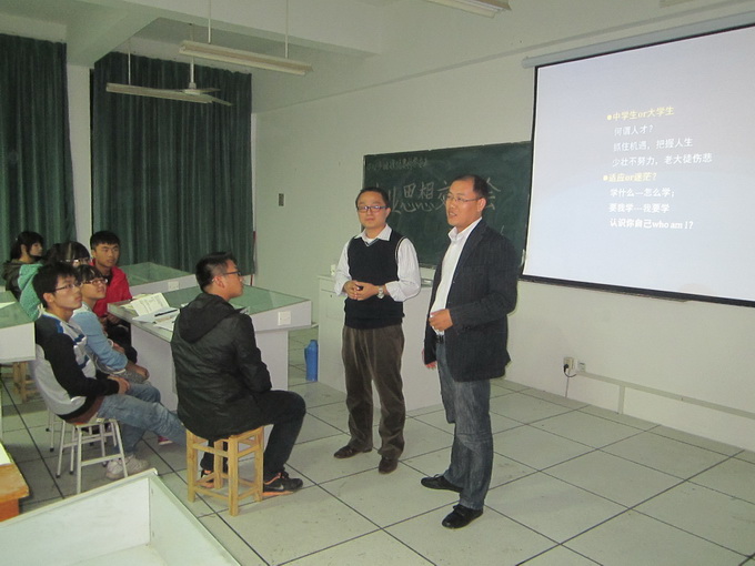 分别在实验楼101、201、212教室开展新生专业导航暨班主任见面会,院党委副书记、专业教师、班主任及辅导员与13级新生共同参与了本次专题活动。
