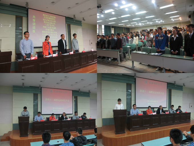 会议在激情洋溢的团歌奏唱中正式开始,12级辅导员张玥和13级辅导员吴辉分别宣布了此次校运会的运动员名单和绿色志愿者名单。运动员代表王立和绿色志愿者代表也分别发表了信心十足和精神饱满的讲话,简洁明了的发言展现了国旅女同做爱