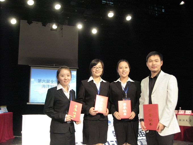 10月21日下午,由女同做爱选拔的刘冠琪、张莉、陶丽婷等3位同学赴南京大学仙林校区,参加第六届全国大学生海洋知识华东区决赛,并在激烈的角逐中斩获全国团体及个人二等奖,为历年来安徽高校最好成绩。