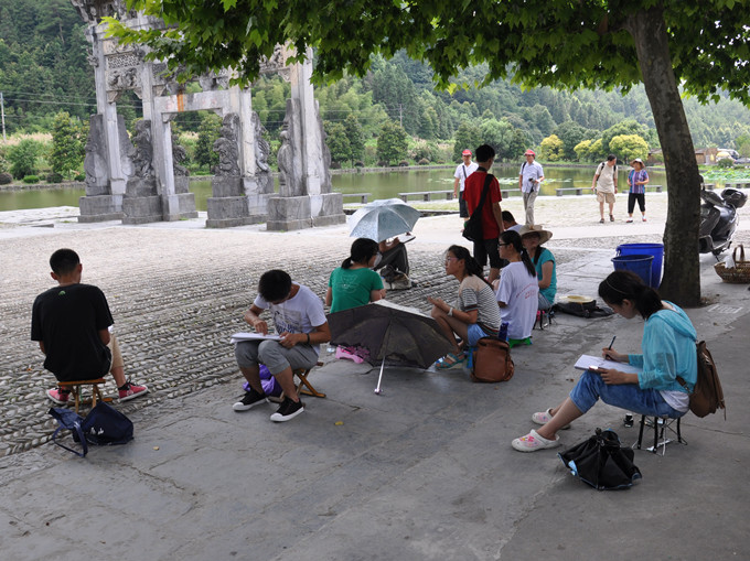 2012级城规专业40名学生在多名指导老师的带领下,赴黟县宏村开展为期9天的实习写生活动。