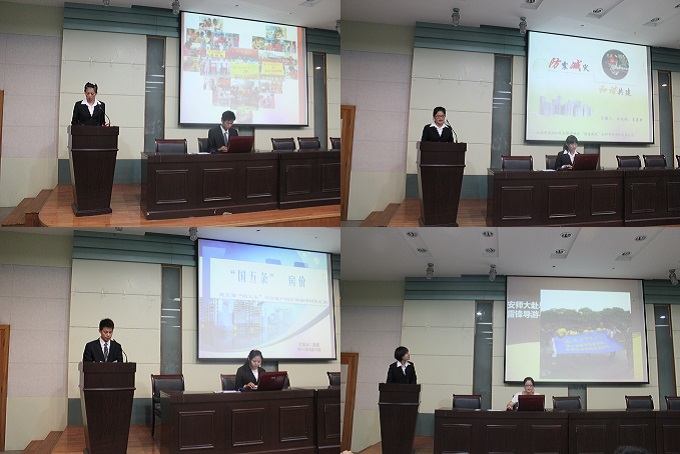 2011、2012级各专业的16支参评实践团队紧紧围绕“实践激扬青春志,奋斗成就中国梦”的实践主题,依次汇报了实践开展情况以及实践成果,汇报现场新颖不断,惊喜频频,他们创意精美的PPT展示、激情生动的现场演说、独具匠心的汇报方式赢得了在场同学的阵阵欢呼及评委老师的高度肯定。