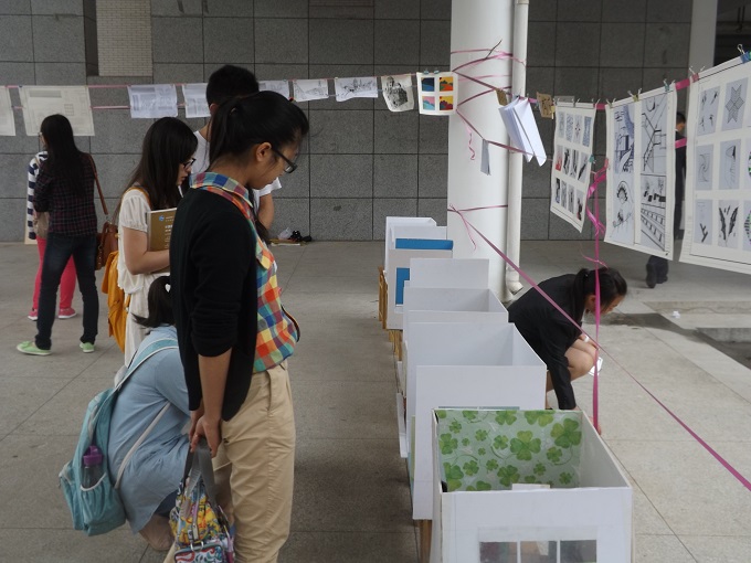 本次专业宣传活动涉及有:介绍办学背景及历史、课程设置、就业方向等;所展的专业作品包括了美术画(素描、水彩、钢笔画等)、建筑模型、抄绘图、水彩渲染作业、专业调研报告等。活动现场,12级城规同学专业热情的引导与讲解,吸引了众多师生驻足观摩,现场气氛融洽而不失热络。同学们还专门设置了奖品赠送环节,将平时精心绘制的建筑透视图赠送热心的参观师生。