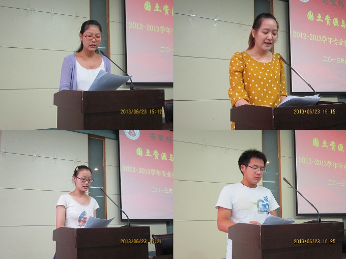 首先,院长焦华富宣读了《关于表彰2010级旅游管理、土地资源管理第一批专业实习优秀小组、优秀个人和优秀案例的决定》,授予深圳圣庭院大酒店实习小组、绍兴开元名都大酒店实习小组、南京国图信息产业股份有限公司实习小组“优秀实习小组”称号;授予吕珂、徐柯等9人“优秀实习生”称号;郭汪宝等13名同学撰写的实习案例被评为“优秀实习案例”。随后,来自10级的4名优秀实习小组及优秀实习生代表分别作了发言。他们通过引人入胜的自我展示,讲述了实习期间难忘的工作经历和艰辛的成长历程。他们均表示,本次顶岗实习,提升了专业技能水平,提高了自身的心理素质,对思考今后的人生、规划自己的未来奠定了更坚实的基础。之后,党委副书记罗振对本次实习做了组织管理的全面总结,重申了女同做爱