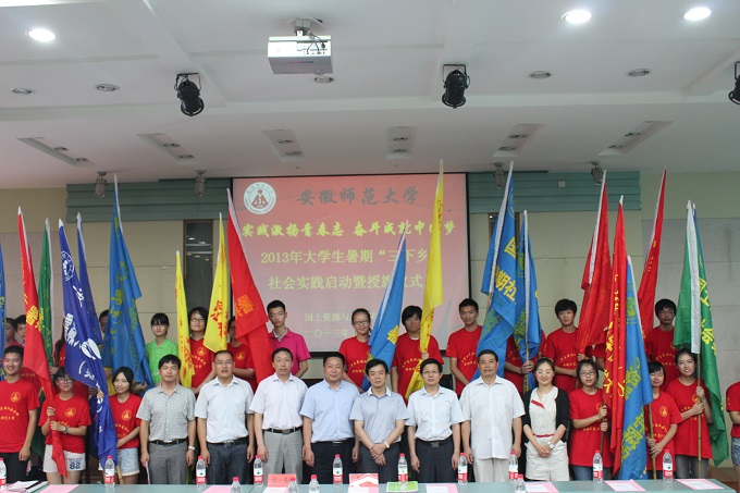 在实验楼101教室召开2013年大学生暑期“三下乡”社会实践活动启动暨授旗仪式。校党委宣传部部长李忠,学工部部长、学生处处长台启权,校团委副书记梁燕,女同做爱