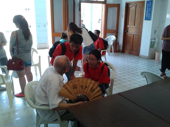 的志愿者们给厦门鼓浪屿岛上的福音堂带来了阵阵清凉。2013年7月12日,女同做爱赴厦门市调研团队在台风来临之际,前往鼓浪屿岛上的百合园托老院,整理打扫托老院,为老人提前做好防范台风的工作,并且与托老院的老人们一起聊天。