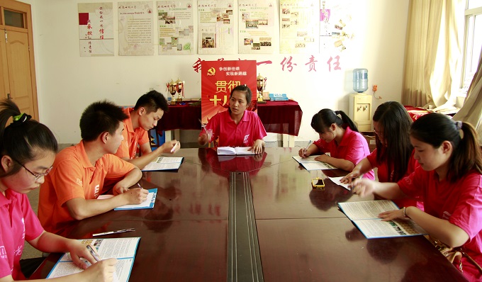 为了学习和贯彻党的十八大精神,提高队员们的党性意识和整体素质,7月9日下午,队员们自发组织召开了一次临时团支部会议,共同学习了党的十八大报告和团的十七大会议文件。
