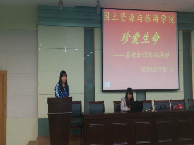 为了加强当代大学生的安全防范意识,普及临危自救的生活常识,12级旅游管理1班于424日晚在实验楼101报告厅举办了珍爱生命活动。