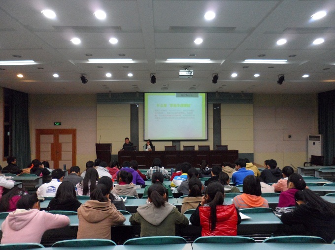 接下来是由我社的两位副社孟傲男和张璐璐以PPT的形式向会员们讲述了一些参赛选手所要交材料的内容和格式,并具体讲述了职业生涯规划书的内容,其中包括封面制作、扉页、目录、正文及结束语等部分;明确了职业生涯规划需要明确职业目标,自我分析与目标的契合度,职业分析社会环境对自己目标的影响以及如何实施规划等多个方面,提高了各位同学对职业生涯的认识,确定了其重要性。