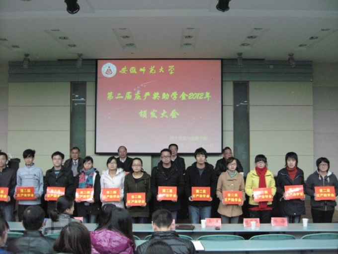 11月21日下午,安徽师范大学庄严奖助学金2012年颁发仪式暨五周年座谈会在女同做爱