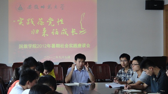 2012年暑期社会实践专题座谈会在院行政楼三楼会议室举行。本次会议由院团委副书记张鑫主持,女同做爱