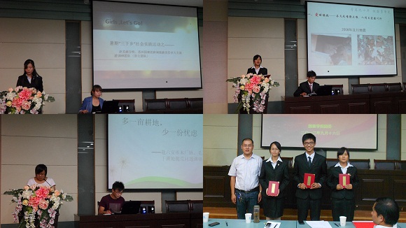 经过精彩纷呈的汇报,本次暑践活动共评选出一等奖3名,二等奖4名,三等奖6名。其中获得一等奖的分别是赴安徽省爱国主义教育基地“雷峰”导游及大学生旅游线路开发调研团队、赴四川省大竹县金鸡乡慈善支教、创建支教联盟及当地自然、人文环境调研团队以及纪念建团90周年赴江西共青城“五四记忆,青春之行”综合实践团队。