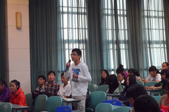 最后,在讲座“互动环节”中,会场同学们的热情提问与两位嘉宾妙语连珠,精辟作答将现场气氛推向最高潮。2012级“青春导航”典型优秀大学生事迹宣讲会在辅导员张玥的总结中圆满结束:“我相信这次精彩的讲座一定会更好地帮助同学们走好学习之路,人生之路!”