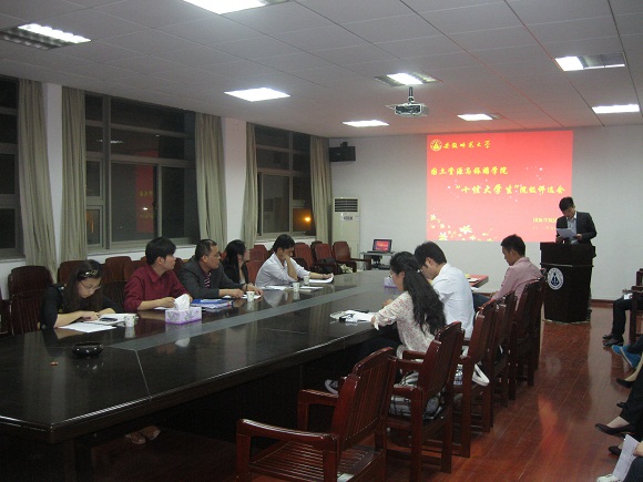 “师大骄子,国旅风华”十佳大学生评选表彰活动在院三楼会议室举行,院党委副书记罗振,团委书记施华转,09、10、11级辅导员出席评选活动,并担任评委。