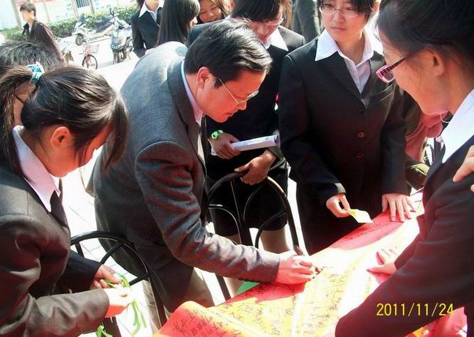 自动化专业的大一新生,联合校爱心者协会、新长城自强社等,为了感恩党,感恩父母,感恩老师,感恩社会,营造知恩、感恩的校园文化氛围,开展了以“情满师大,感恩江城”为主题的一系列活动。校党委学工部部长余国升、校团委书记台启权、副书记邵登辉、国旅女同做爱