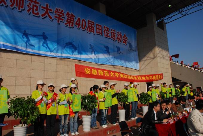 ,而是整个安师大所有在校师生的志愿服务精神。他们坚守着“绿色和谐,你我同行”的宗旨,为我校第40届田径运动盛会的顺利举办全勤投入、默默奉献。