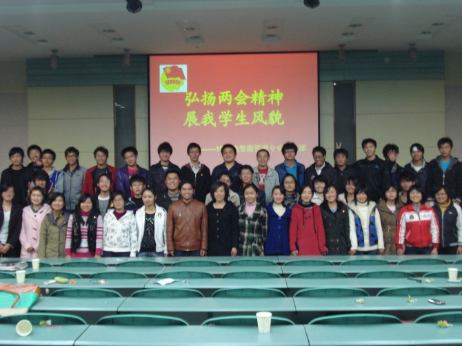 在校两代会顺利召开之际,为让学生对两代会有更深刻的了解,进一步促进班风学风建设的深入进行,1129日下午,2010级土地资源管理专业在实验楼101教室举办了“弘扬两会精神,展我学生风貌”主题团日活动。