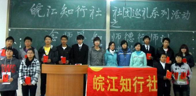 1128日上午,皖江知行社社团巡礼系列活动之“念师恩 知师德 行师训”演讲比赛在行知楼2040104教室成功举行。活动吸引了全校共15名同学参加此次比赛。