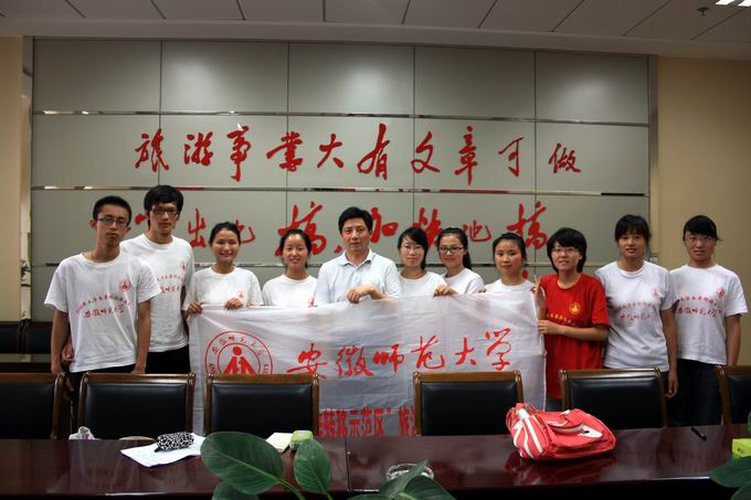 “皖江城市带承接转移示范区”旅游交通调研团队开展了“立足宁宜新干线,服务皖江示范区”暑期社会实践启动仪式。芜湖市旅游局副局长左青荣出席会议,并对项目调研提出指导意见。