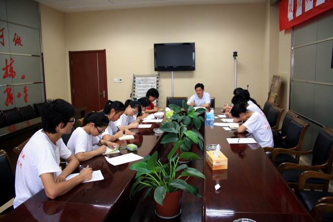 在启动仪式上,首先由队员代表发言,介绍了此次暑期社会实践活动的基本概况以及实践方案。随后,左局长发表讲话,他用“123445”模式精炼的概括了芜湖旅游交通现状并阐述了芜湖旅游发展战略及方向。左局长认为,宁宜城际铁路建设机遇和挑战并存,芜湖旅游业应从四个方面做足工作:一要提高旅游服务质量,二要丰富旅游产品,三要提高接待能力,四要扩大市场营销。期间,左局长与本小组成员进行了良好的互动,左局长热情、耐心的解释了本小组成员的种种疑问,并为小组暑期社会实践活动指明了方向,明确了目标。
