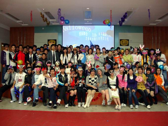 实验楼121教室举办了以“尽情展现自我,拉近彼此距离”为主题的万圣节假面舞会。09级旅游管理专业辅导员梁燕参加了舞会。
