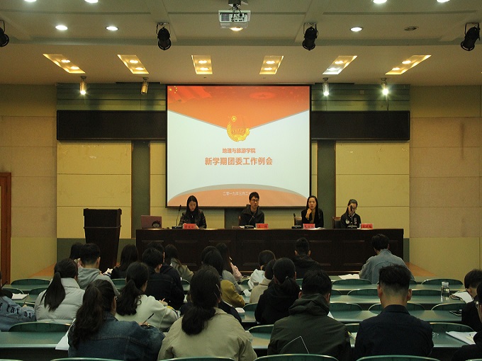 查煜)3月20日下午,地理与旅游学院团委工作例会在地旅实验楼101报告厅顺利召开。会议由院团委书记吴辉主持,院团委副书记陈祥云、彭媛媛、鲍晓楠,团委委员及各班团支书参加本次会议。