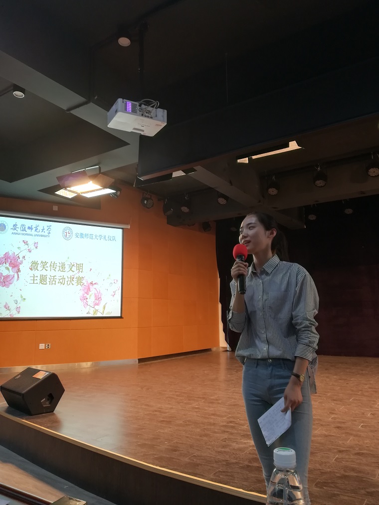 本网讯(礼仪队 吴倩 何双 彭媛媛)文明修身,你我同行。2019年5月29日,安徽师范大学校礼仪队主办的“世界微笑日·微笑传递文明”比赛决赛在大学生活动中心二楼团委多功能厅举行。女同做爱