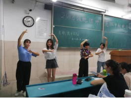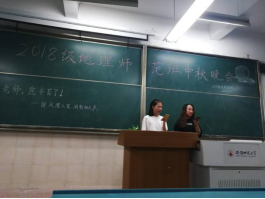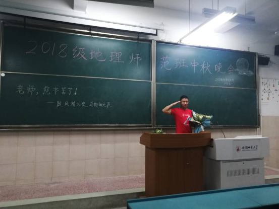 本网讯(罗文菁 王阳)为庆祝中秋佳节暨欢送新疆籍阿卜来提同学参军入伍,9月10号晚上七点半,2018级地理科学师范班辅导员王阳及全体同学于教学楼四栋203举办中秋晚会。