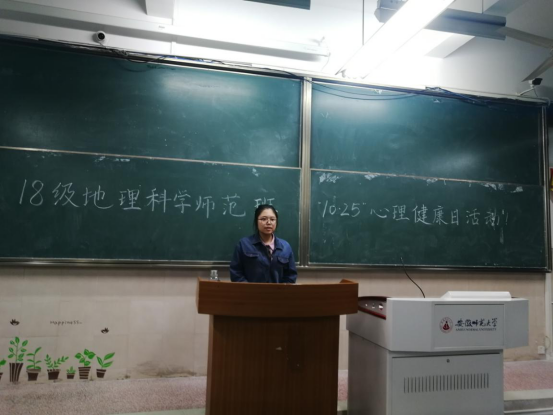 本网讯(王阳 刘俊琪)尊重生命,你我同行!为进一步加强大学生心理健康教育,宣传普及心理健康知识,形成良好的心理健康氛围,2018级地理科学师范班积极参与大学生心理健康月活动,并于10月22日在4栋103教室开展以“尊重生命,你我同行”为主题的“10·25”心理健康日活动。本次活动由班级心理委员陈冬阳主持,2018级地理科学师范班全体同学参与。