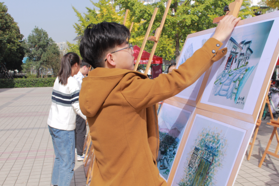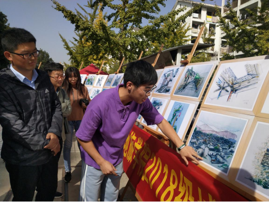 为此次画展的顺利开展,18城乡规划的学生们很早就开始了筹备工作。评选画作、筹集画板,班委成员在班长沈越的带领下各司其职,有条不紊地做着准备工作。拉横幅、摆画板,30日上午,班委们提前赶到现场布置工作,齐心协力为画展做最后的准备。