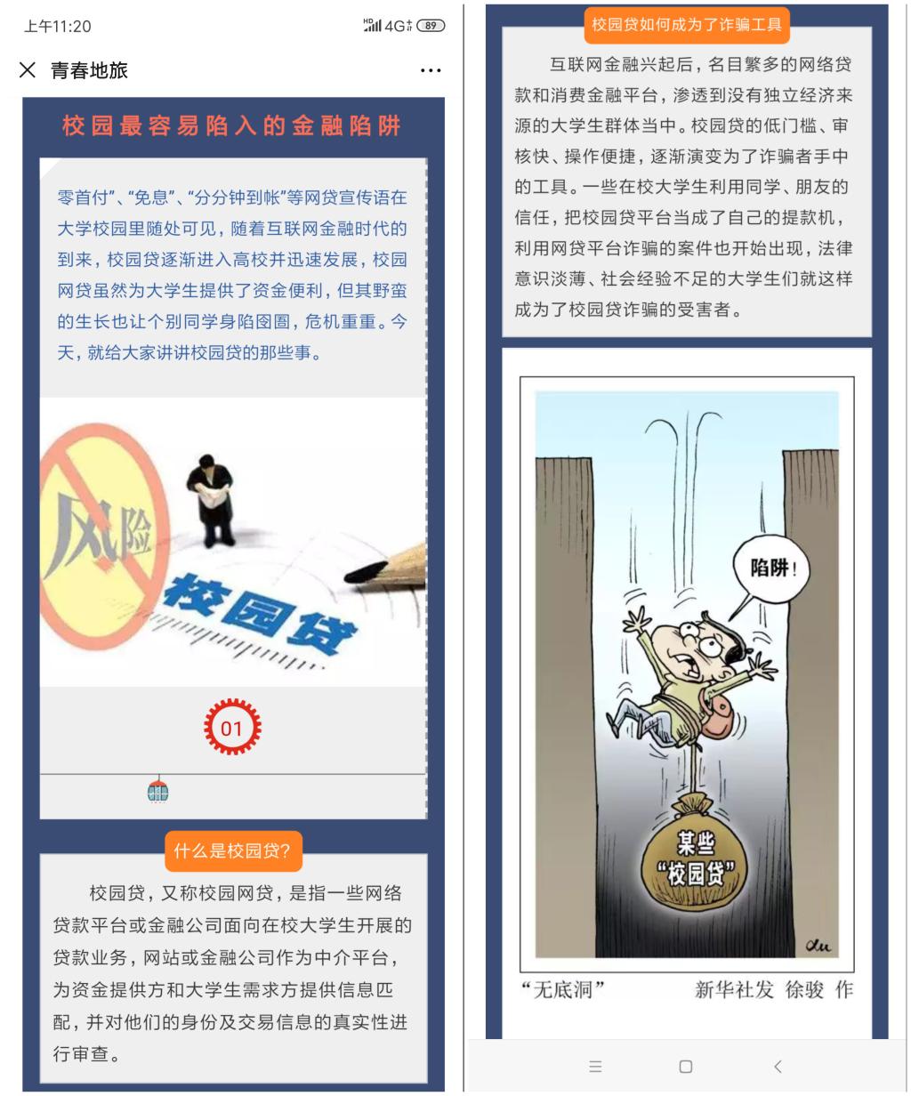 线上,学院团委带领各团支部通过班级官方微博、微信群、QQ群等方式全面展开安全知识普及,在重要节点进行安全提醒,并坚持“零点汇报”常态化、规范化,严守“四项禁令”;线下学院全体专兼职辅导员精心准备安全教育材料,多次开展规范用电、交通安全、防盗防骗、校园网贷、心理健康等主题教育活动,积极关注学生心理健康,努力营造建设平安校园的和谐氛围,增强学生安全防患意识。