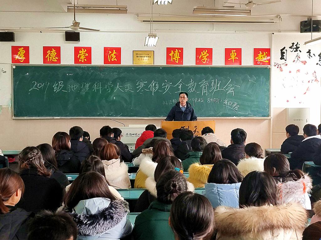 武诺 齐小学)为提高同学们的安全意识,1月12日上午,2019级地理科学大类专业于行知楼2020404举行寒假安全教育班会。2019级地理科学(拔尖人才班)、2019级地理科学类1班、2019级地理科学类2班全体同学参加会班会。班会由辅导员齐小学主持。